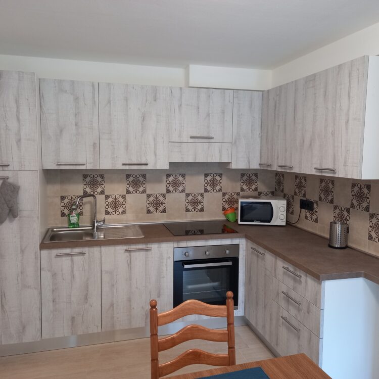 Grazioso trilocale con due camere con letto matrimoniali e la cucina con lavatrice, lavastoviglie, bollitore, microonde e aria condizionata. Ideale per una famiglia da 3 o 4 persone.